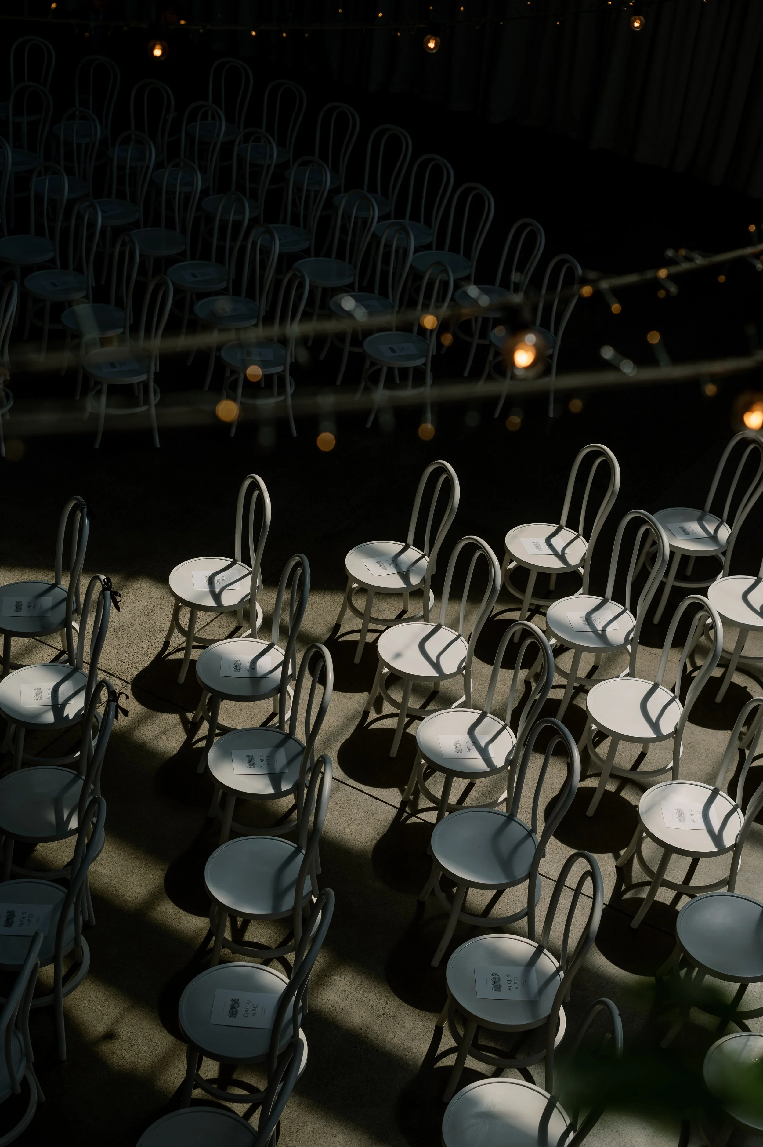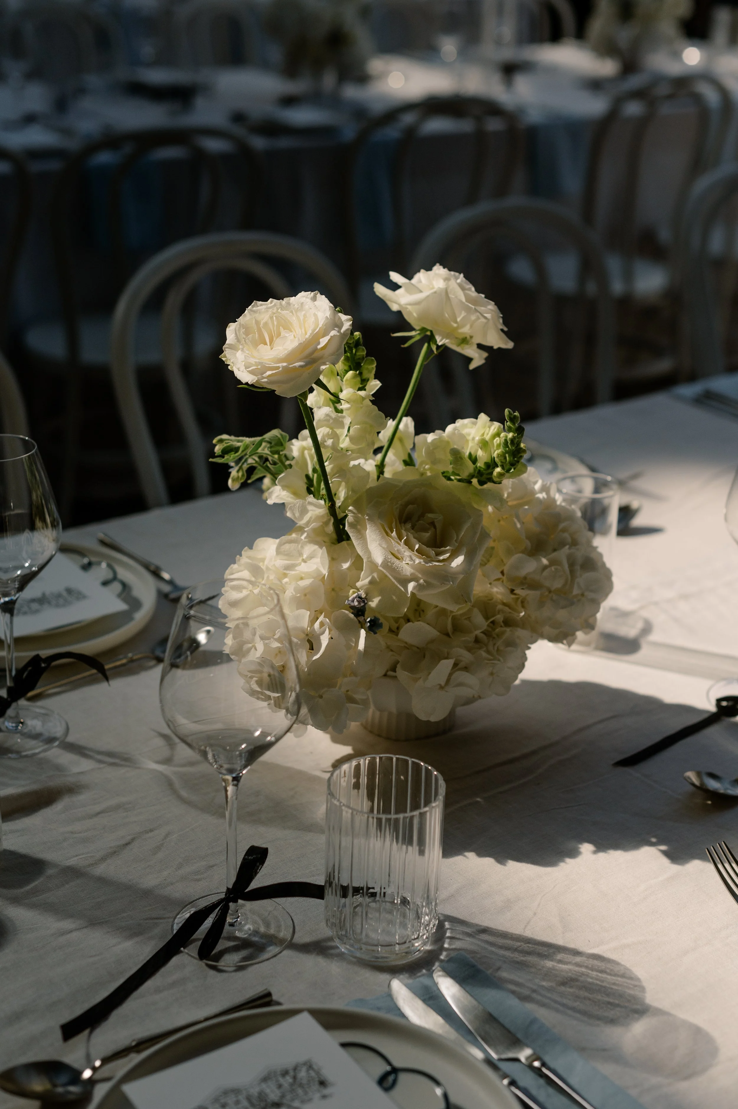 Ruby and Chris’s wedding day was steeped in style and intention. Set in the heart of Hastings’ iconic Tribune precinct, The Atrium offered the perfect backdrop for both their ceremony and reception. This contemporary urban venue, with its striking blend of indoor and outdoor spaces, was brought to life by the talented team at Flock, who curated a truly bespoke guest experience. As sunlight poured through the glass rooftop, it danced across the room, casting dramatic contrasts of light and shadow that beautifully highlighted the modern architecture and delicate, romantic details throughout.